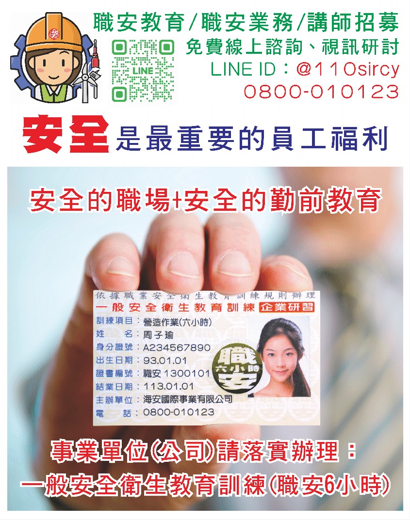 職安卡/小綠卡/6小時勞工安全衛生訓練/新進及調換業務人員/六小時工安課程/六小時勞安課程/6小時工安課程/6小時勞安課程/職業安全衛生/一般安衛/六小時工安證/六小時勞安證/6小時工安 證/6小時勞安證
