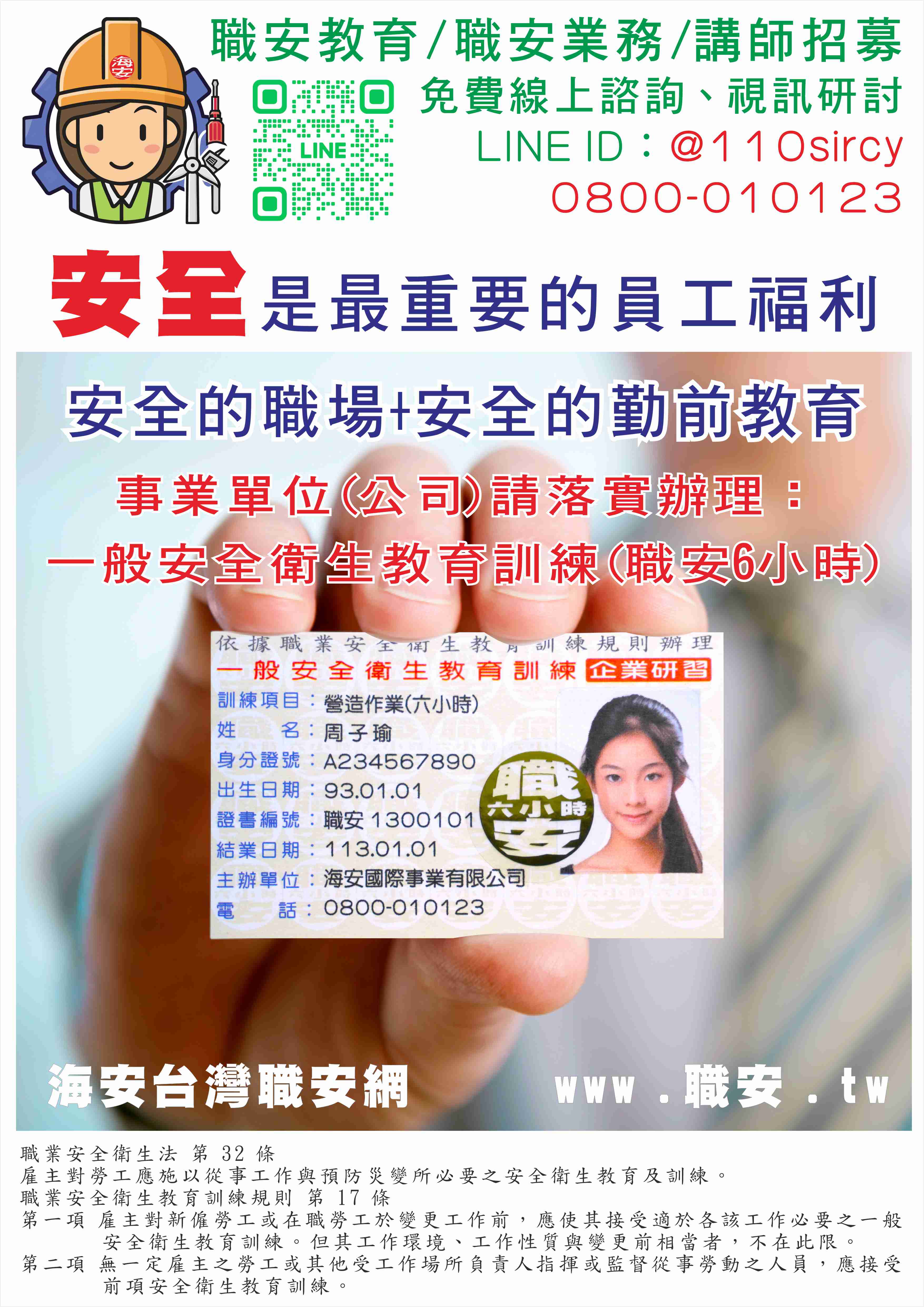 近來一直有會員朋友諮詢職安卡的問題~聽說7/1日全面要有台灣職安卡,不然會被罰錢?台北工地一定要有台北職安悠遊卡?進台北工地要嗶悠遊卡才能進工地......??? 其實這都是業者未能徹底了解政令,誤解法規...... 無論是台北市職安悠遊卡、台灣職安卡...都是一般安全衛生教育,只是訓練單位不同,為卡片設定一個名子,法規並無任何卡的規定。 台灣職安卡、台北市職安悠遊卡是對於營造工地無特定雇主之勞工,加強其工地一般安全衛生教育(六小時),避免成為教育死角或進不同工地都需重複上課 ,浪費教育資源的安全措施,不同工地可經系統統一查詢,並非一定只能持有台灣職安卡或台北職安悠遊卡才不會受罰,可參考附圖職安署及台北市政府網頁說明截圖。